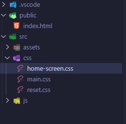 Om het uitzicht te veranderen van onze pagina moeten we eerst een nieuw bestand aanmaken. In de .css map maak je een bestand aan genaamd "home-screen.css" en kopieer je de volgende code in.