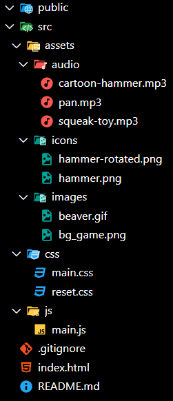 De waarde zal ervoor zorgen, als we straks de functionaliteit doen, dat als de bever wordt aangeklikt deze ook verdwijnt.In de CSS kan je zien dat er een lijn code staat voor "background-image: url("../assets/images/beaver.gif");". Als je wil mag je deze lijn code vervangen door een eigen foto of gif. Let wel op dat het pad klopt