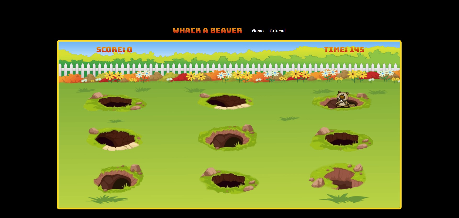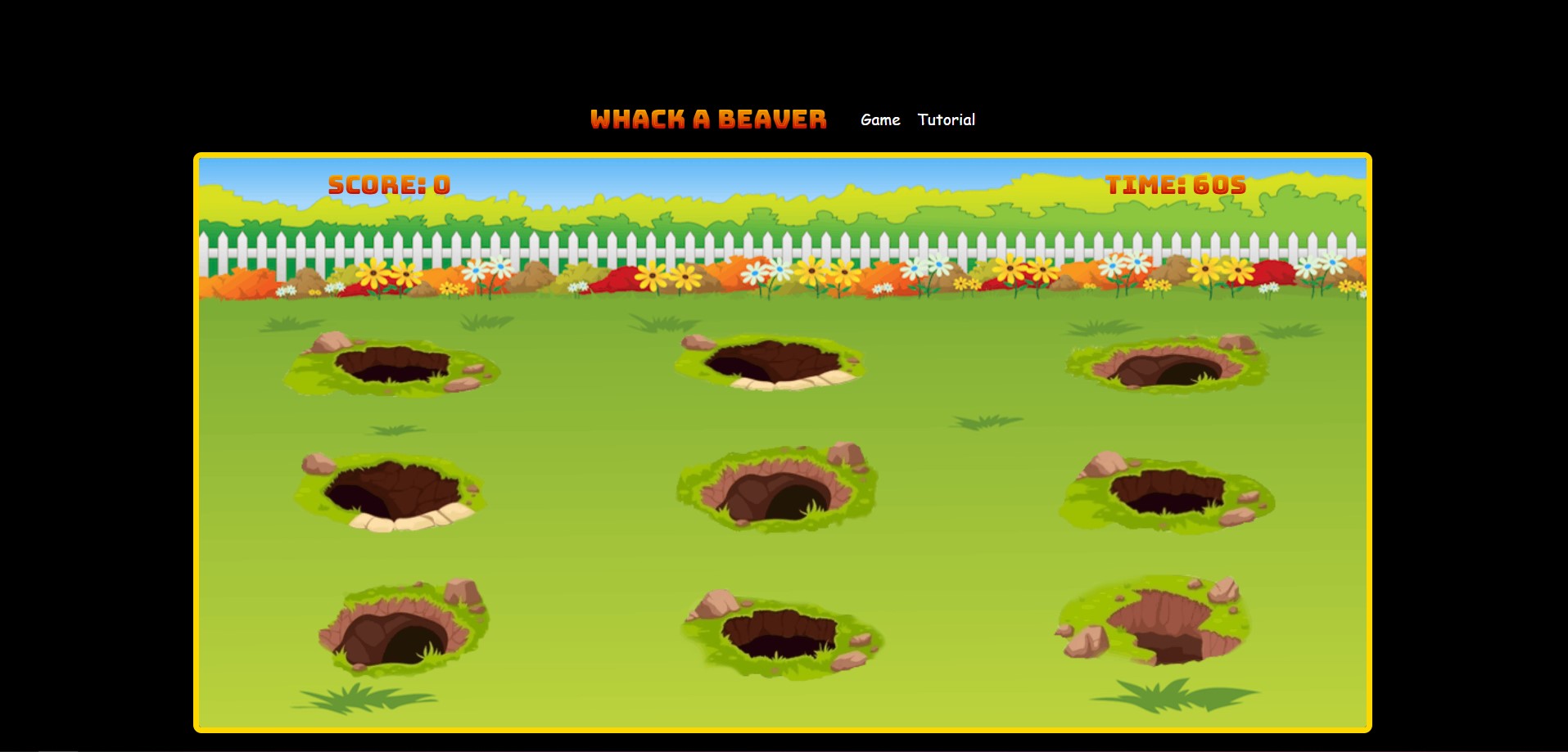 We zullen nu de gamepagina voorzien van een navigatie, speelbord, score en timer, zodat iedereen zijn score kan zien en de hoeveelheid tijd die ze nog hebben om op de bevers te klikken.