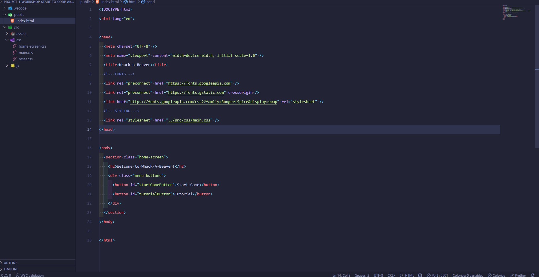 In de volgende stap zullen we het uitzicht van de game aanpakken.We moeten een lijn code toevoegen aan ons bestand en een nieuw bestand aanmaken in de css map