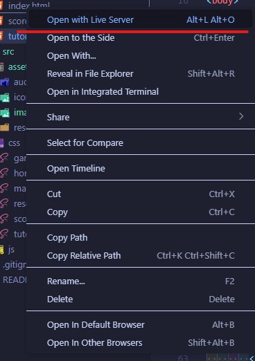 Je kan nu de LiveServer starten door met je rechter muisknop te klikken op "index.html" en vervolgens "Open with live server" te kiezen.